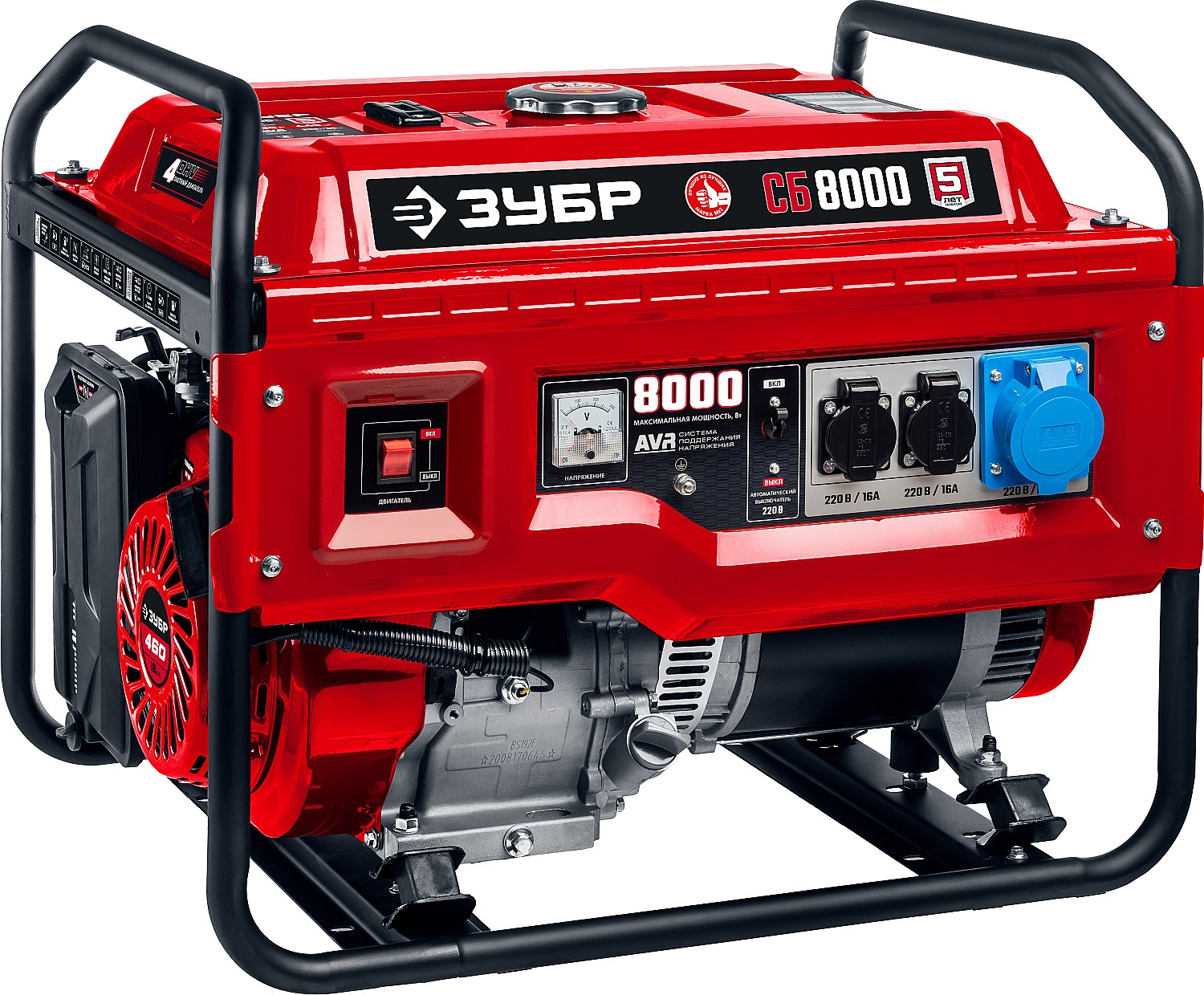 ЗУБР 8 кВт, однофазный, синхронный, щеточный, бензиновый генератор СБ-8000 Мастер