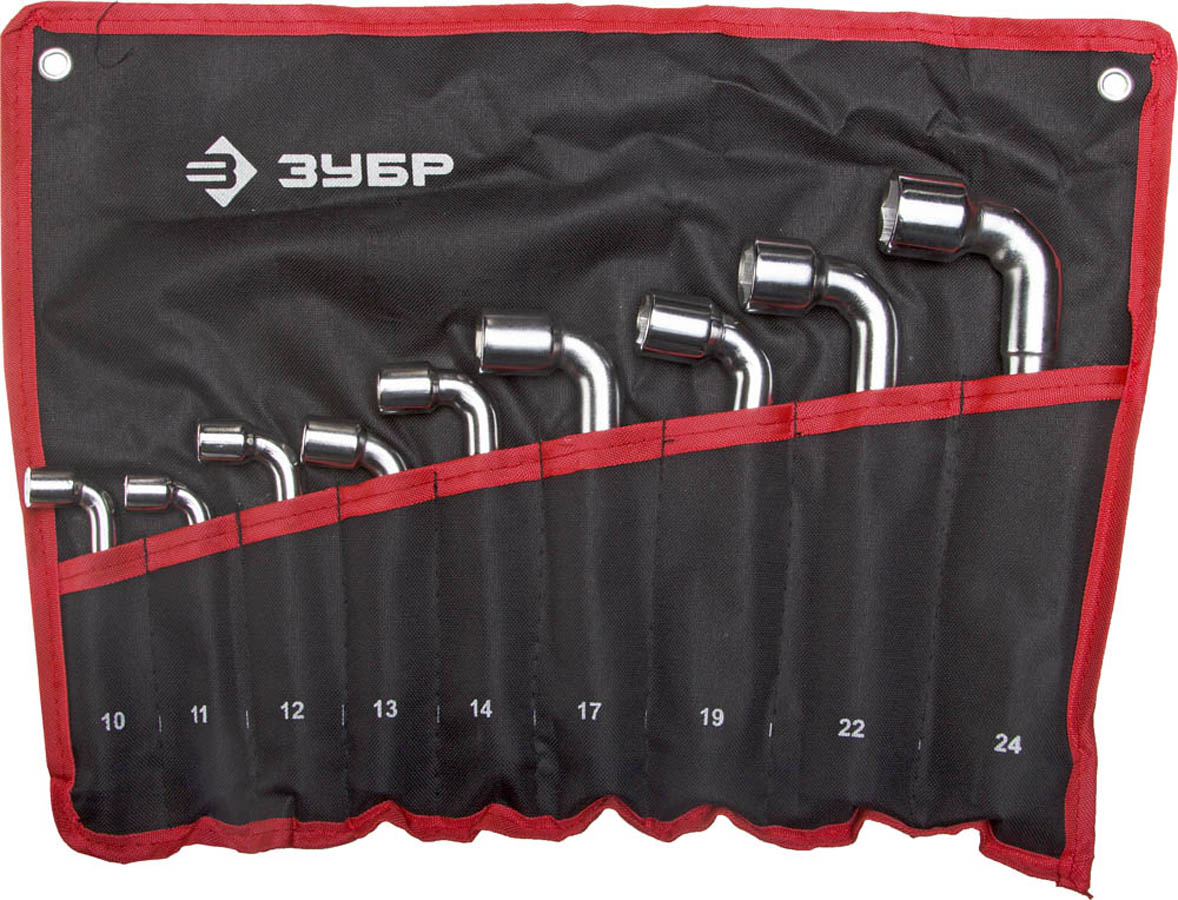 ЗУБР 9 шт., хромированный, набор: ключи торцовые, двухсторонние L-образные, проходные 27185-H9
