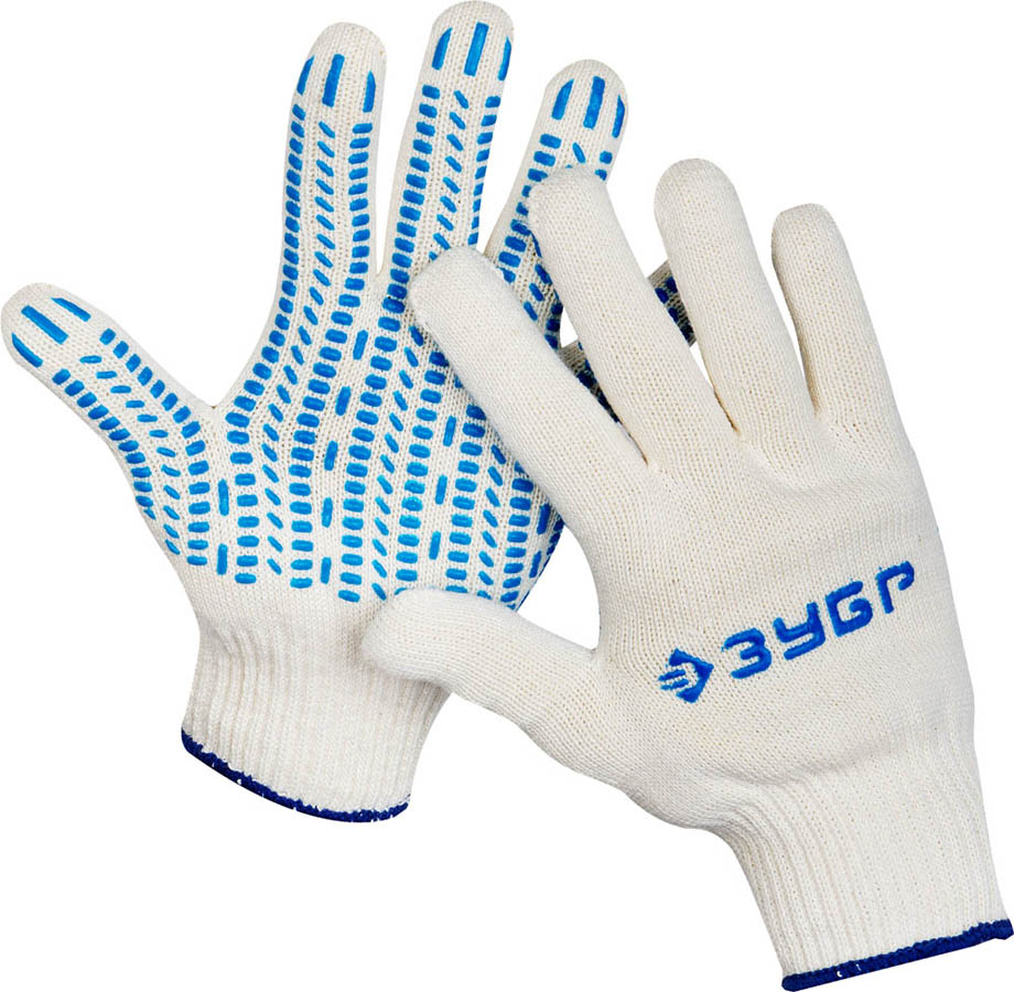 ЗУБР L-XL, 10 класс, 10 пар, х/б, перчатки с увеличенной площадью ПВХ-гель покрытия "протектор" 11390-K10 Профессионал