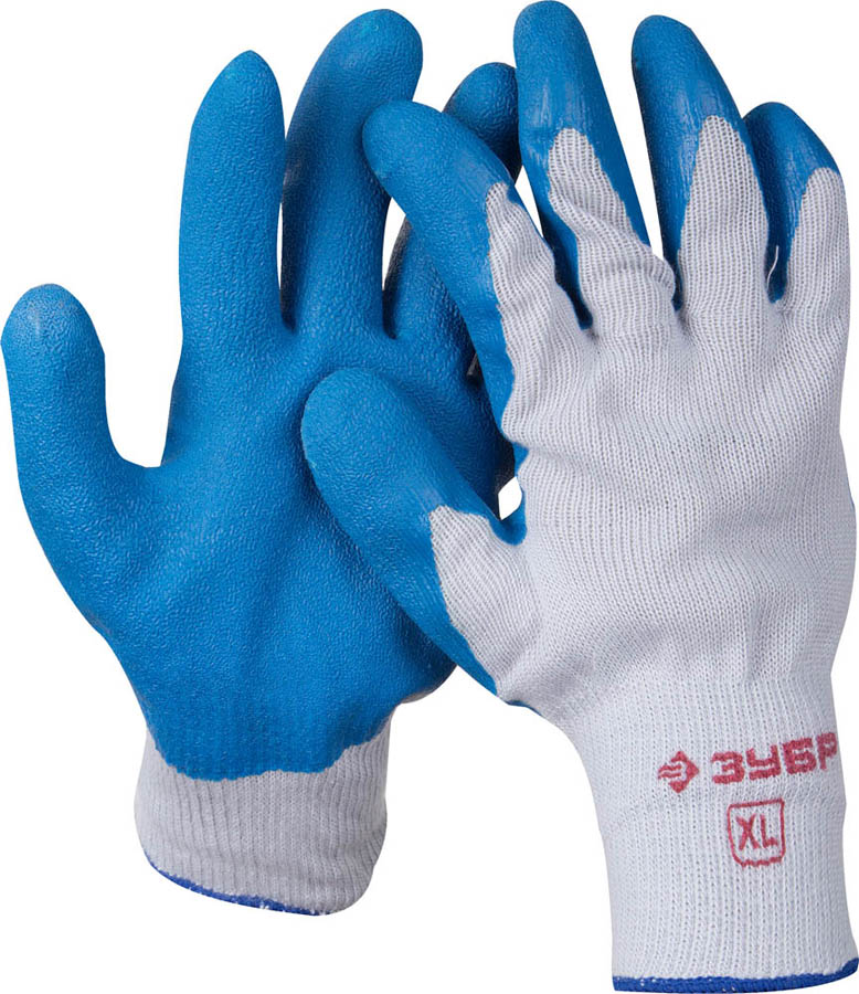 ЗУБР XL, 10 класс, рельефные особопрочные противоскользящие, утолщенное латексное покрытие, перчатки трикотажные 11260-XL Профессионал